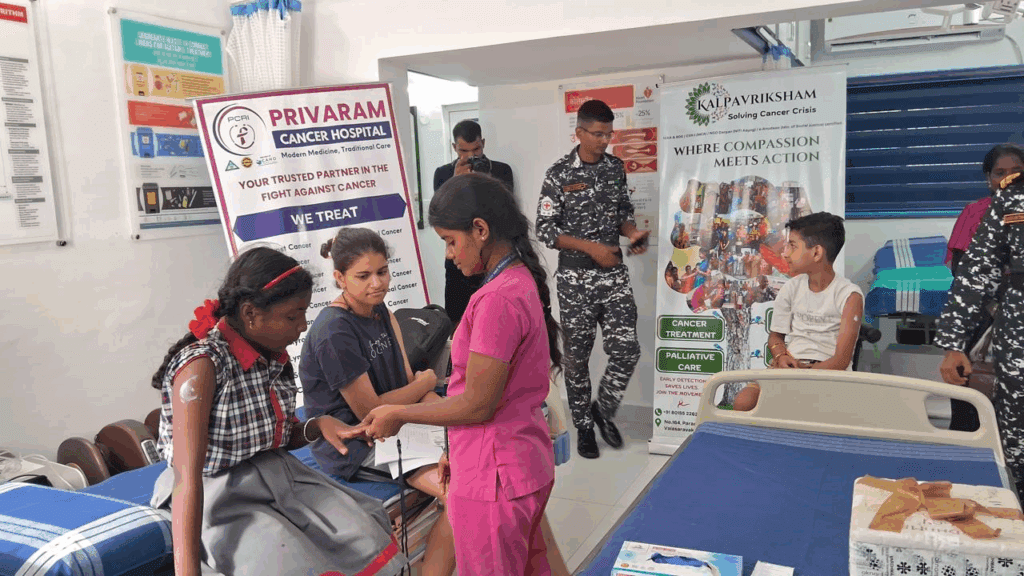 Kalpavriksham Trust, in collaboration with Privaram Cancer Hospital, successfully organized an HPV vaccination drive at Indian Navy Ship (INS) Pallava under Project Nila. As part of this preventive healthcare initiative, 17 children received the HPV vaccine to help protect against cervical cancer. This effort highlights the continued commitment to safeguarding community health through early intervention and cancer prevention.