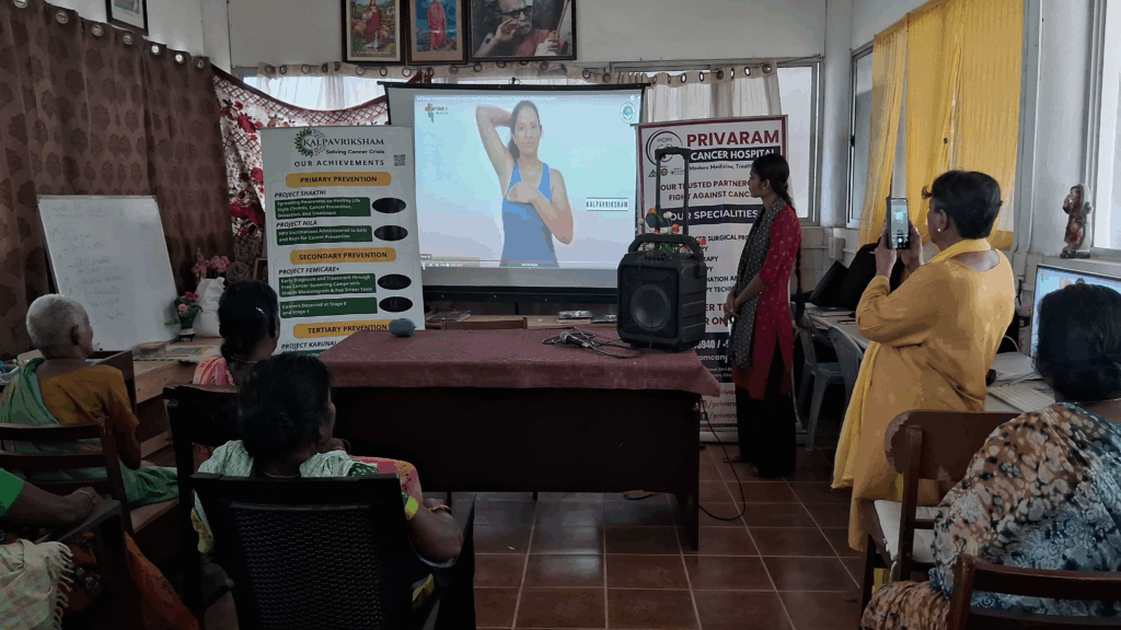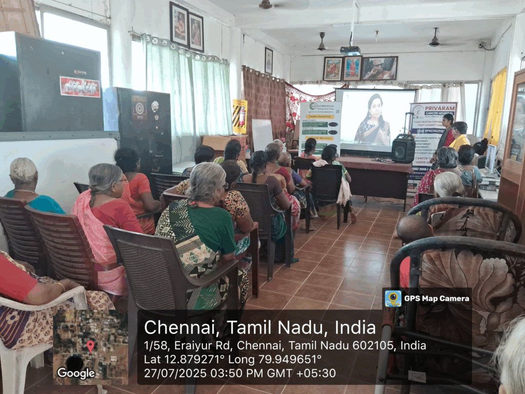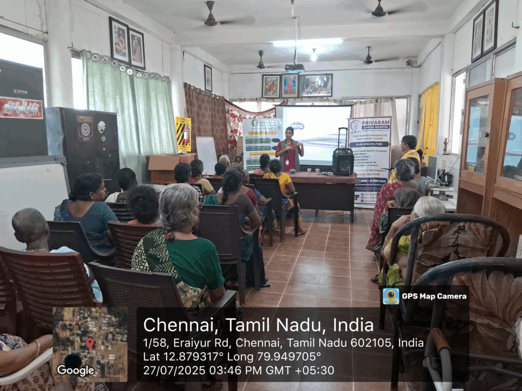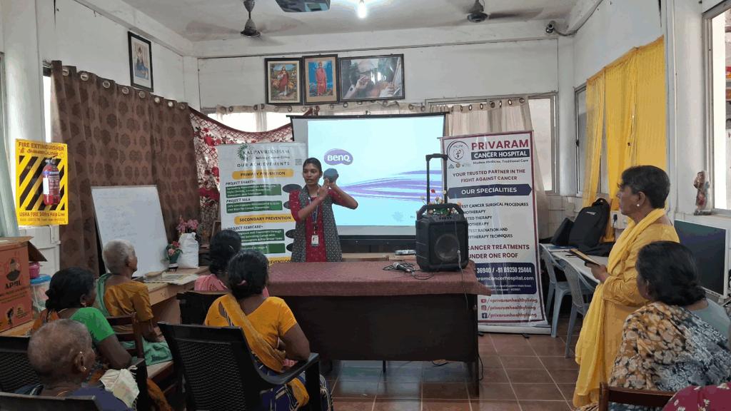 Kalpavriksham Trust, in collaboration with Privaram Cancer Hospital, organized a Cancer Awareness Talk at New Life Charitable Trust, Eraiyur Village.The session, conducted by the team from Privaram Cancer Hospital, was attended by over 30 participants and focused on the importance of self-breast examination, mammograms, and Pap smear tests. Emphasizing the critical role of these screenings in early detection and cancer prevention, the session provided participants with practical insights into the procedures, their benefits, and the necessity of regular health check-ups. This initiative aimed to empower individuals with knowledge, raise awareness, reduce cancer risks, and promote proactive health practices for improved community well-being.