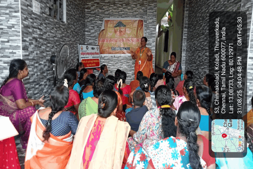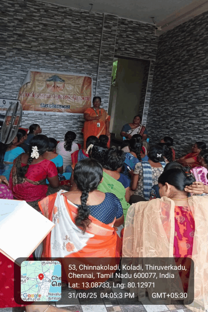 Kalpavriksham Trust, in collaboration with Privaram Cancer Hospital, conducted a Cancer Awareness Talk at Chinna Koladi, Thiruverkadu, with the participation of around 38 individuals. The session emphasized the importance of mammogram and Pap smear tests in the early detection of cancer. The speaker provided a clear explanation of the procedures and their benefits, motivating participants to adopt proactive health measures.This initiative aimed to promote preventive healthcare by empowering the community with knowledge, encouraging timely screenings, and fostering informed choices to safeguard their health and well-being.
