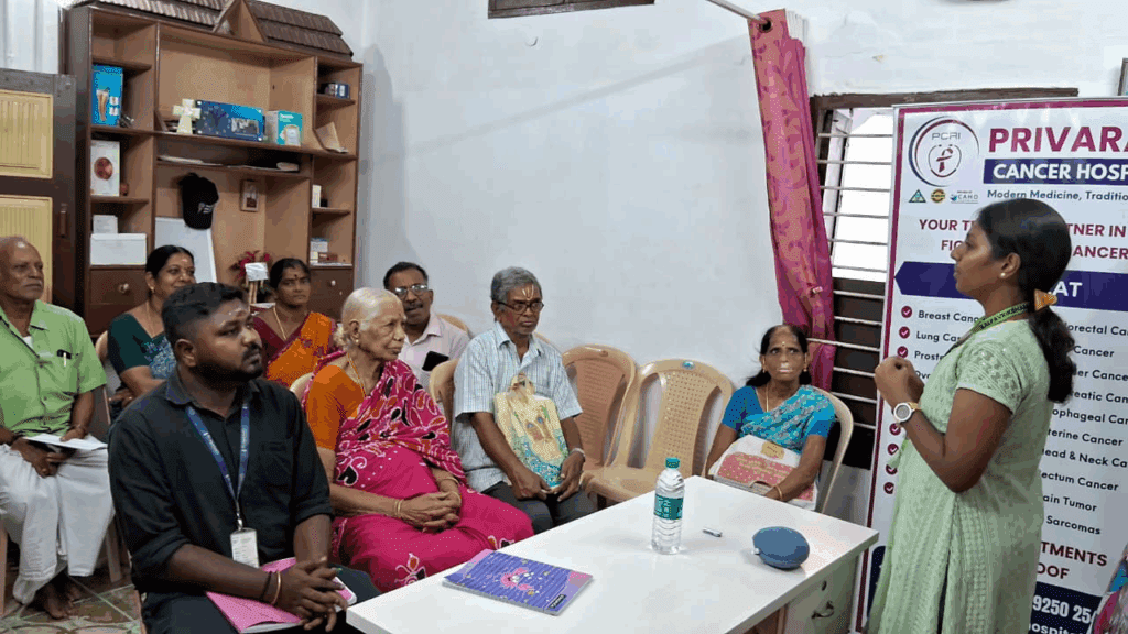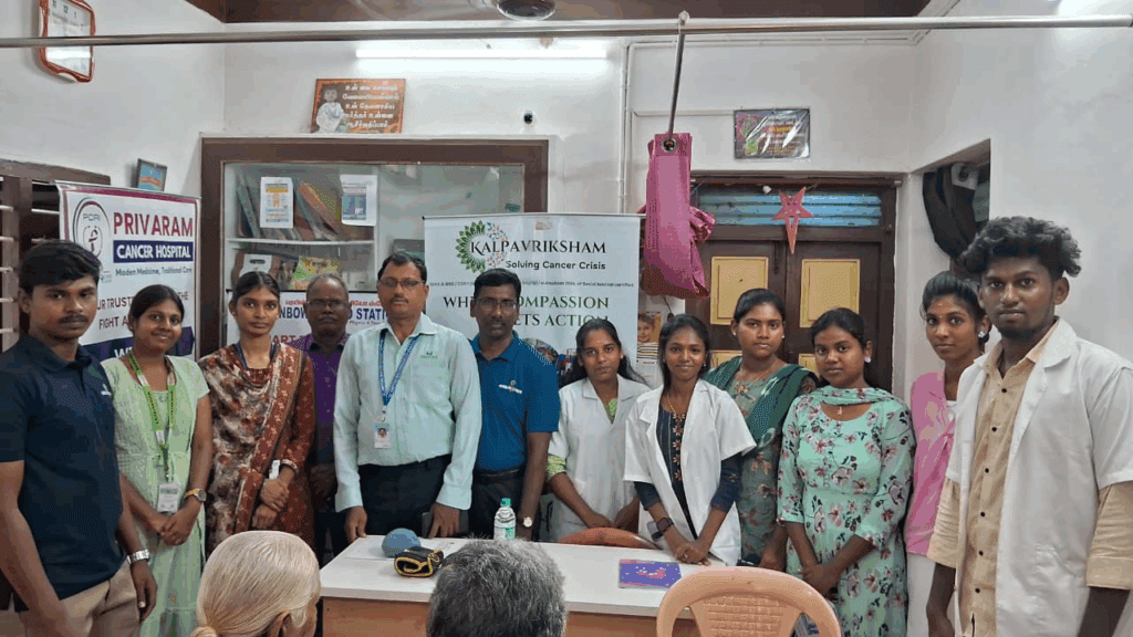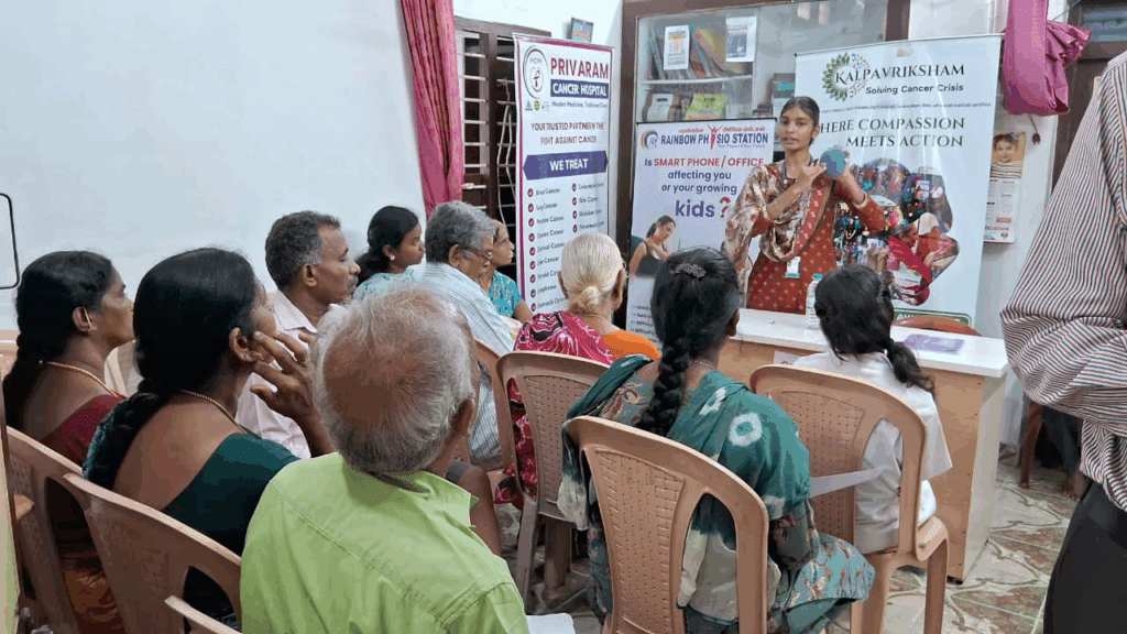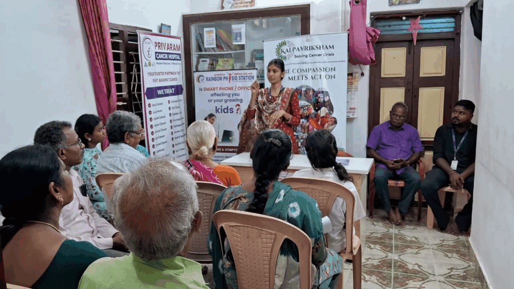 Kalpavriksham Trust, in collaboration with Privaram Cancer Hospital, organized a Cancer Awareness Talk at Rainbow Physio Station, New Perungalathur. The session, conducted by the expert medical team from Privaram Cancer Hospital, was attended by over 15 participants. The discussion highlighted the importance of early detection through mammograms, Pap smear tests, and the HPV vaccine, emphasizing their crucial role in cancer prevention and timely diagnosis. Participants gained valuable insights into screening procedures, benefits, and the necessity of regular health check-ups.This initiative aimed to empower individuals with knowledge, reduce cancer risks, and encourage proactive health practices for overall well-being.