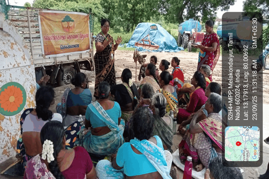 Kalpavriksham Trust, in collaboration with Privaram Cancer Hospital, organized a Cancer Awareness Talk at Sivanvoyal-Melakondaiyur, Thiruvallur.The session educated 28 participants on the importance of mammogram and Pap smear screenings, emphasizing their critical role in early detection and prevention of breast and cervical cancers. The speaker provided clear insights into the procedures and benefits of these tests, motivating attendees to adopt proactive health practices. This initiative aimed to empower the community through awareness, encouraging timely screenings and informed health decisions for a healthier future.