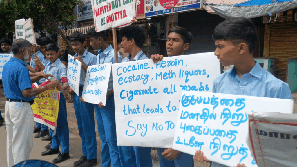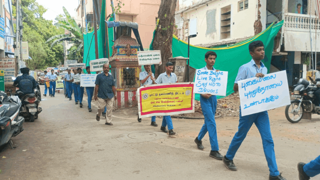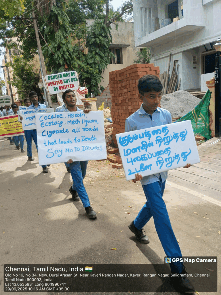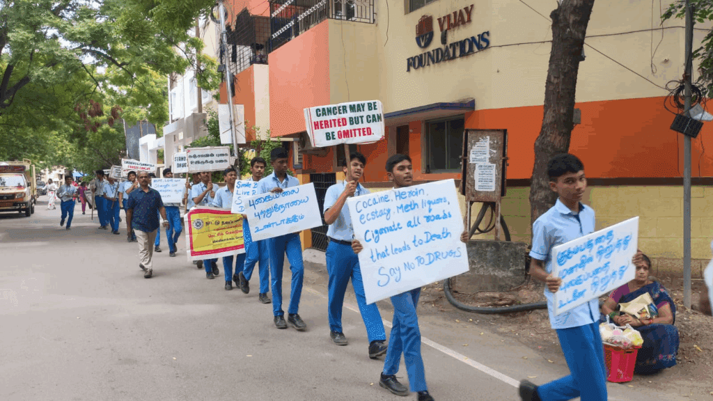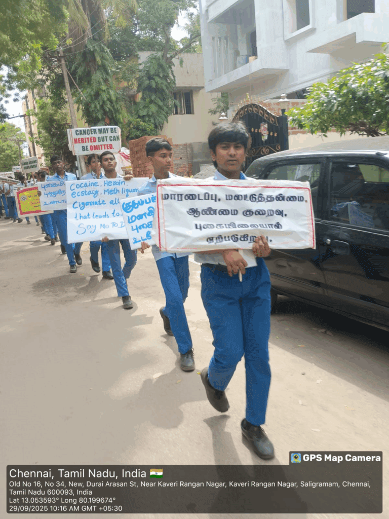Cancer Awareness Walkathon organized by the NSS Unit of Padma Sarangapani School, Virugambakkam, on 29-05-2025