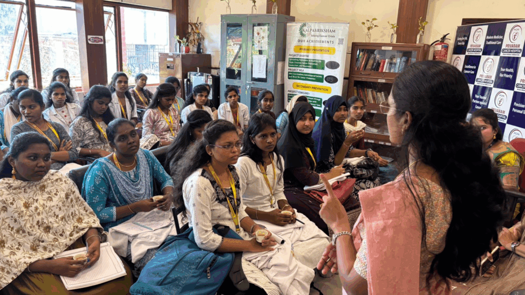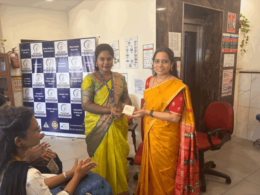 Dr. Banu Priya conducted a cancer awareness session for students of Sathyabama University during their field visit to Privaram Hospital.