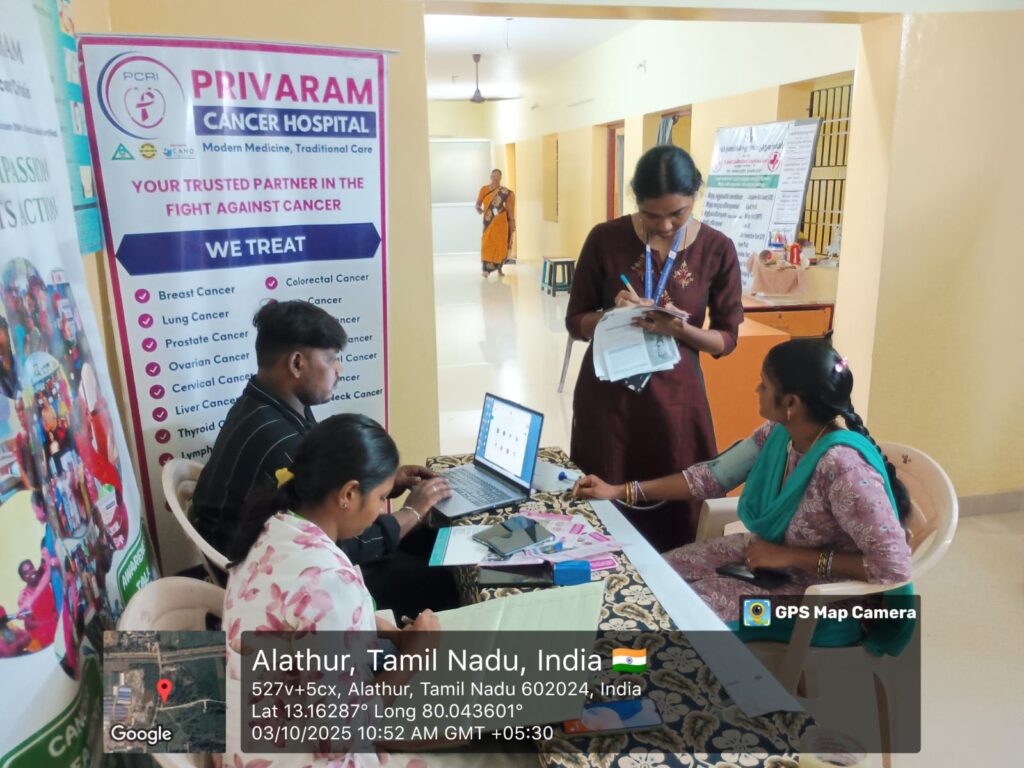 Breast and cervical cancer continue to affect millions of women worldwide — but awareness and early detection can save lives. To spread this vital message, NSS Unit 7 of CEG Anna University, in collaboration with Kalpavriksham Trust and Privaram Cancer Hospital, conducted a Cancer Screening & Awareness Camp at Udavum Nanbargal Hospital, Alathur Village, Avadi.