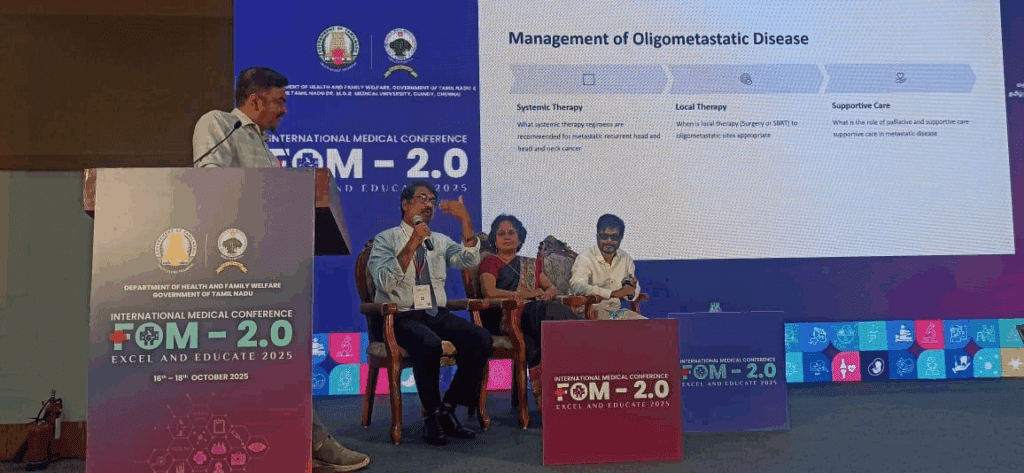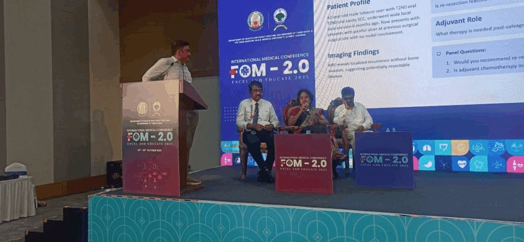 Dr. Manikandan Moderates Recurrent Adnexal Cancer Session at FOM 2.0 with Medical Students at Chennai Trade Centre, Nandambakkam on 18-10-2025