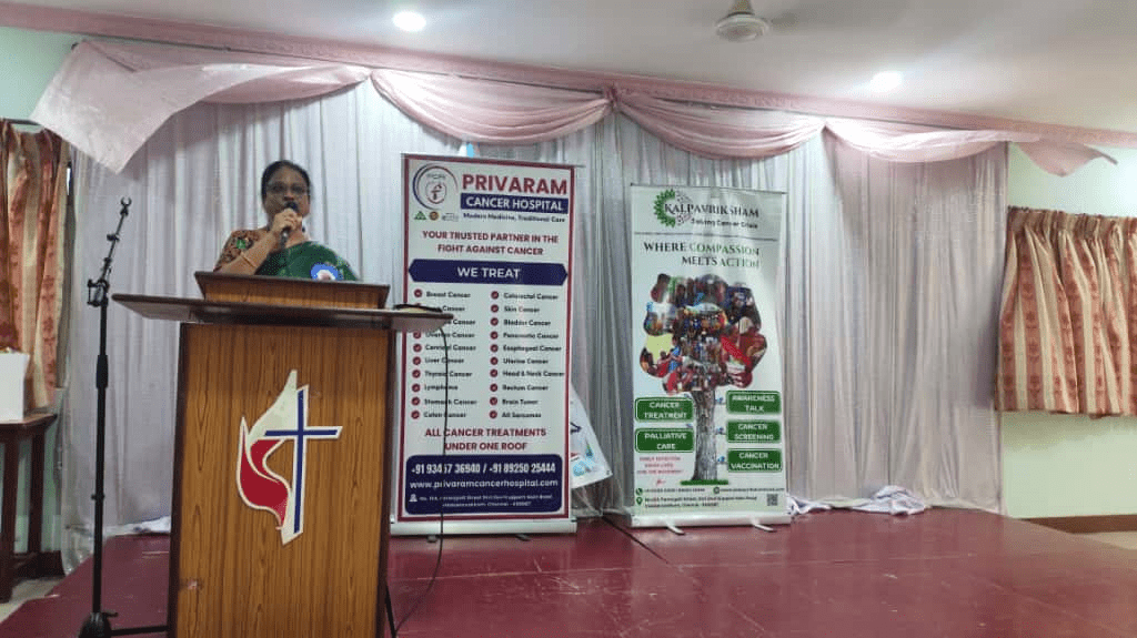Kalpavriksham Trust, in collaboration with Privaram Cancer Hospital, successfully organized a Cancer Awareness Talk at Methodist Tamil Church, Vepery, attended by over 50 participants. Led by the expert medical team from Privaram Cancer Hospital, the session emphasized the importance of early detection through mammogram screenings, Pap smear tests, and the HPV vaccine. Attendees gained valuable insights into the procedures, their benefits, and the critical role these screenings play in preventing and detecting breast and cervical cancers early. This initiative aimed to empower individuals with knowledge, encourage proactive health practices, and highlight the life-saving impact of timely screenings.