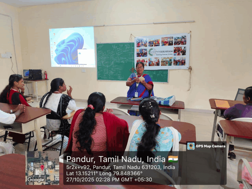Kalpavriksham Trust, in collaboration with Privaram Cancer Hospital, organized an impactful Cancer Awareness Talk at Indira Medical College, Pandur – Thiruvallur, which was attended by approximately 120 students.The session focused on early detection and cancer prevention, with special emphasis on women’s health. It highlighted the importance of mammogram screenings, Pap smear tests, and the HPV vaccine in preventing breast and cervical cancers.The expert speaker discussed key topics such as cancer risk factors, screening procedures, and the benefits of timely detection, motivating attendees to adopt proactive health measures. Participants gained valuable insights into how preventive screenings can significantly reduce cancer risks and were encouraged to make informed health decisions.The initiative aimed to create a lasting impact by promoting awareness, encouraging early diagnosis, and fostering a culture of preventive healthcare within the community.