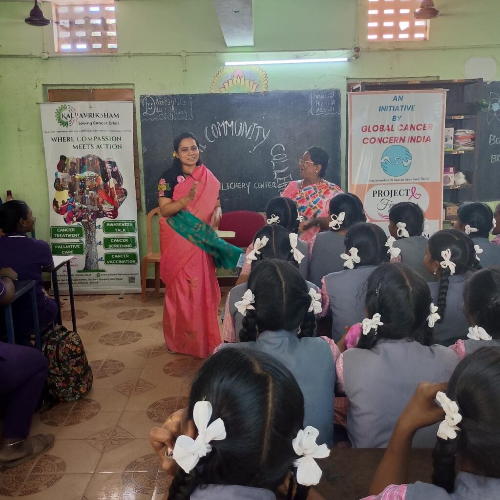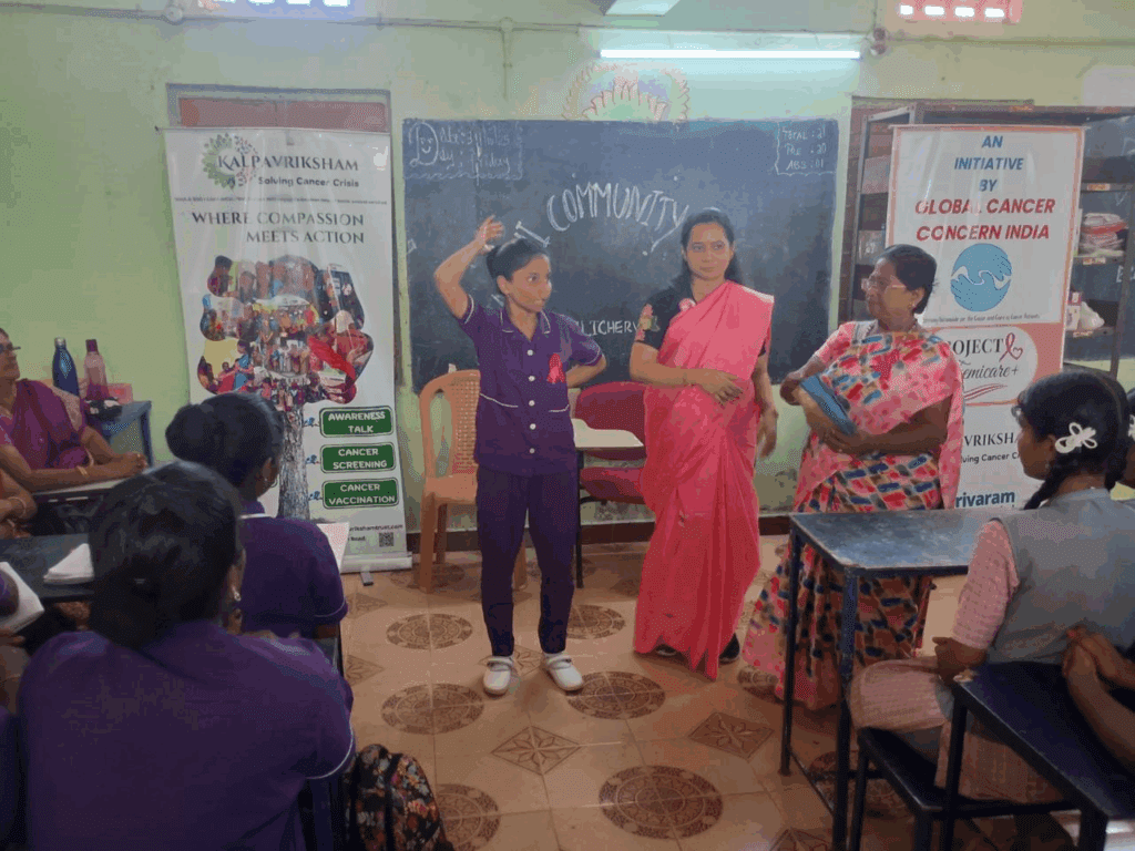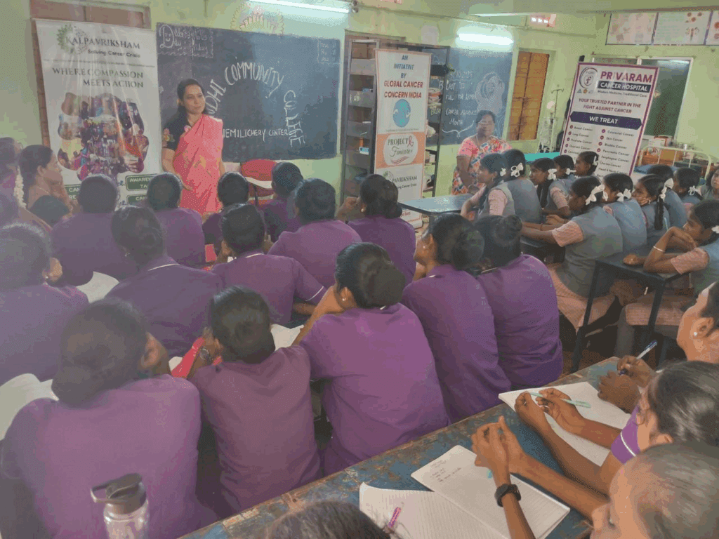 Kalpavriksham Trust, in collaboration with Global Cancer Concern India and Privaram Cancer Hospital, organized a Cancer Awareness Session at Gandhi Community College, Pattabiram. The session aimed to educate participants on the importance of early detection, preventive screening, and healthy lifestyle practices to reduce the risk of cancer.Over 80 beneficiaries actively participated in the program, gaining valuable insights into the symptoms, screening methods, and available treatments for various types of cancer. The talk was delivered by medical experts Dr. Banu Priya, who emphasized the life-saving benefits of regular health checkups and cancer awareness.This initiative reflects a collective effort to build a healthier, cancer-aware community and inspire individuals to take proactive steps in safeguarding their well-being.