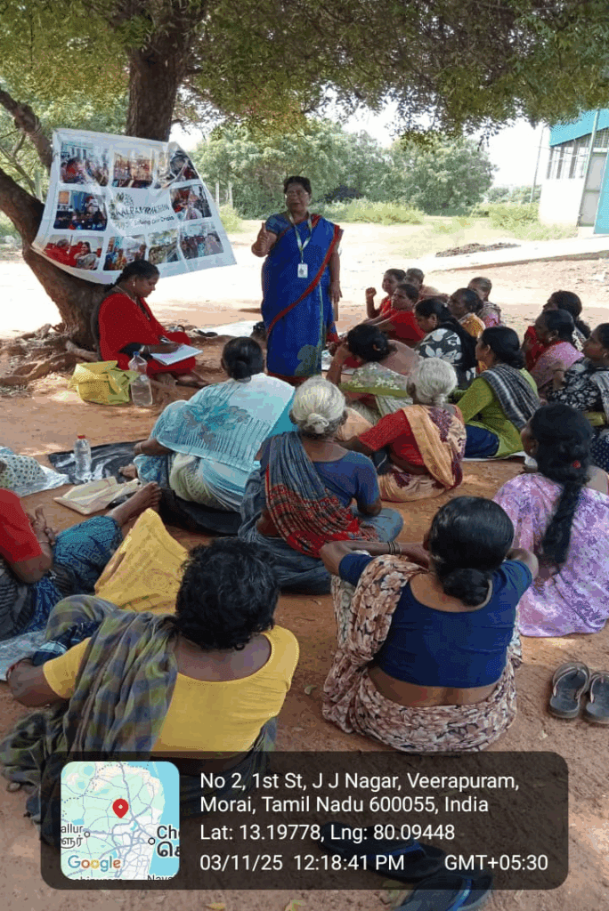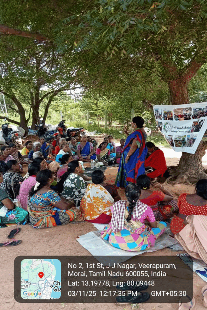 Kalpavriksham Trust, in collaboration with Privaram Cancer Hospital, organized a Cancer Awareness Talk on November 3, 2025, at Poochi Athipedu Kannaiamman Nagar, Thiruvallur. The session reached 33 participants, emphasizing the importance of mammogram and Pap smear screenings for the early detection and prevention of breast and cervical cancers.The speaker shared clear and practical insights into the procedures, benefits, and significance of these tests, motivating participants to embrace proactive health practices. This initiative aimed to empower the community through awareness, encouraging timely screenings and informed health decisions—paving the way for a healthier and cancer-aware future.