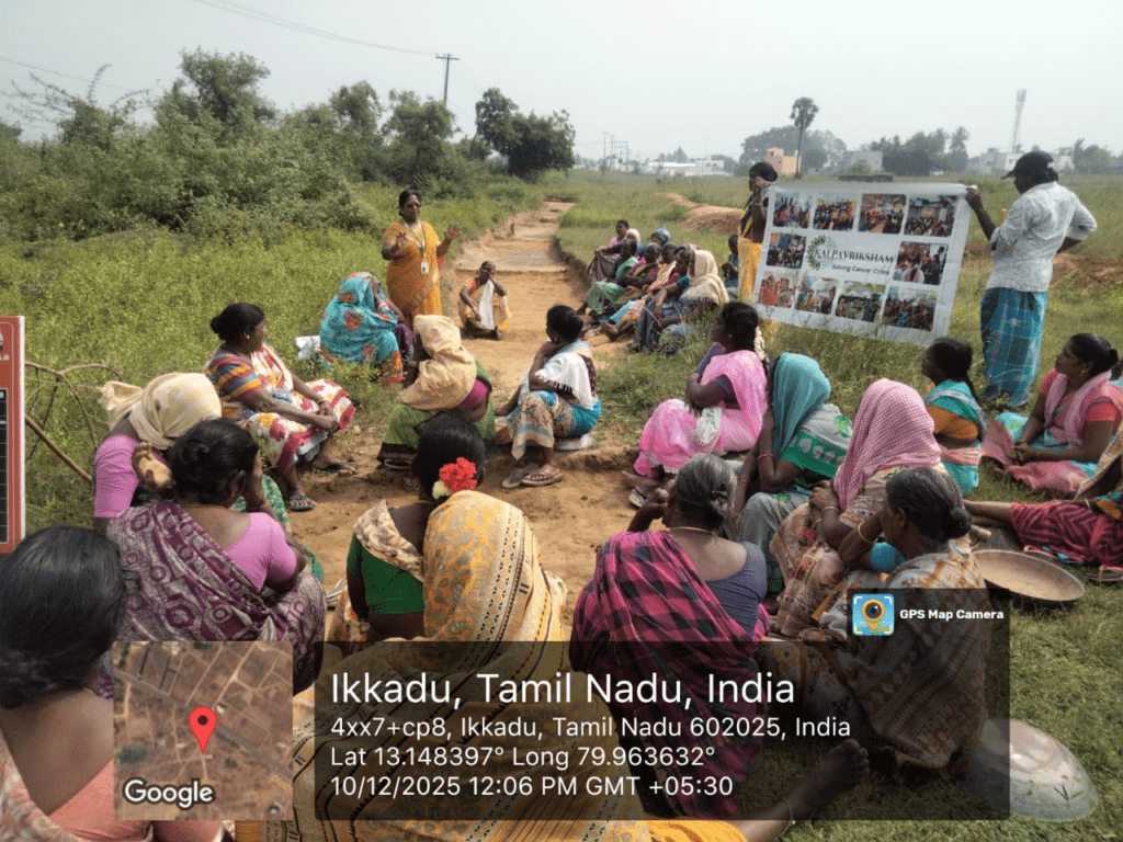 Kalpavriksham Trust, in collaboration with Privaram Cancer Hospital, organized a Cancer Awareness Talk at Kilambakkam Village, Ikkadu, Thiruvallur. The session educated 46 participants on the importance of mammogram and Pap smear screenings, highlighting their crucial role in the early detection and prevention of breast and cervical cancers. The speaker shared clear and practical insights into the procedures and benefits of these tests, inspiring attendees to adopt proactive health practices.This initiative aimed to empower the community through awareness, encouraging timely screenings and informed health choices for a healthier future.