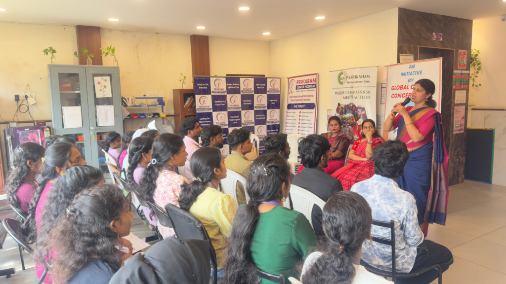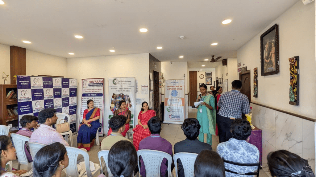 We were delighted to welcome 23 enthusiastic students from Sathyabama University to Privaram Hospital as part of their field exposure program. The visit featured an insightful and interactive session led by Dr. M. Banu Priya, who shared valuable knowledge on cancer awareness, early diagnosis, and contemporary treatment approaches. This meaningful initiative enriched the students’ practical understanding of oncology while inspiring them to contribute actively toward building a more informed and cancer-aware society.