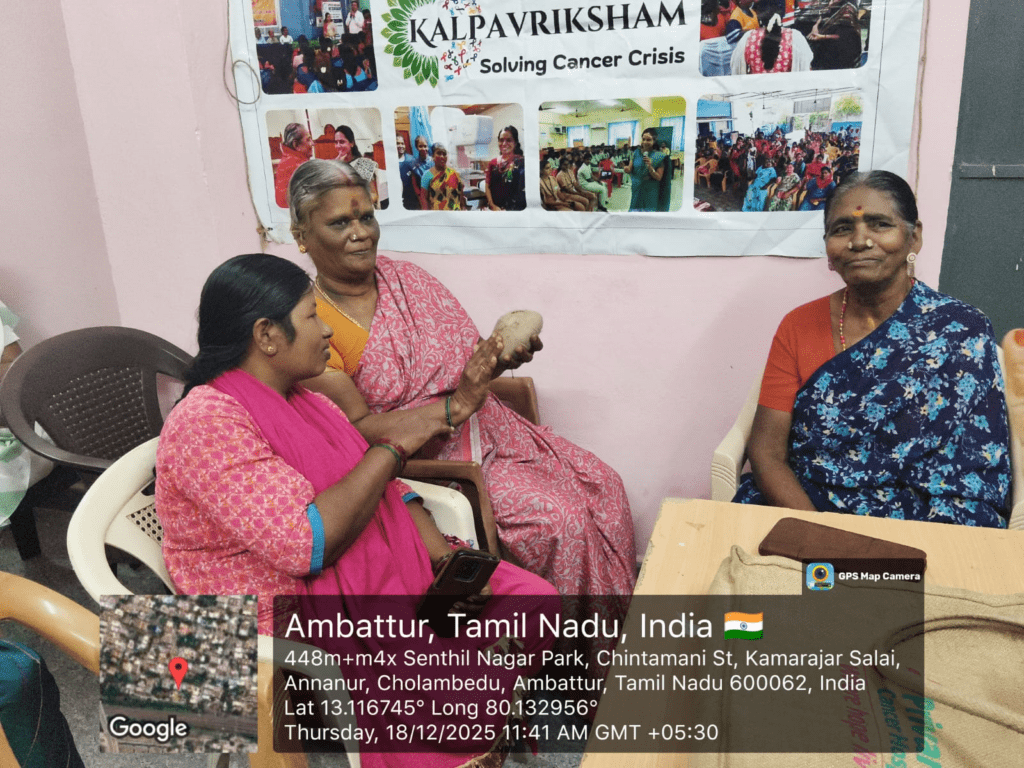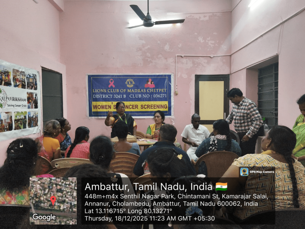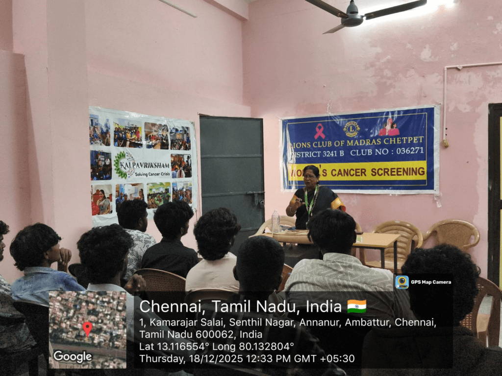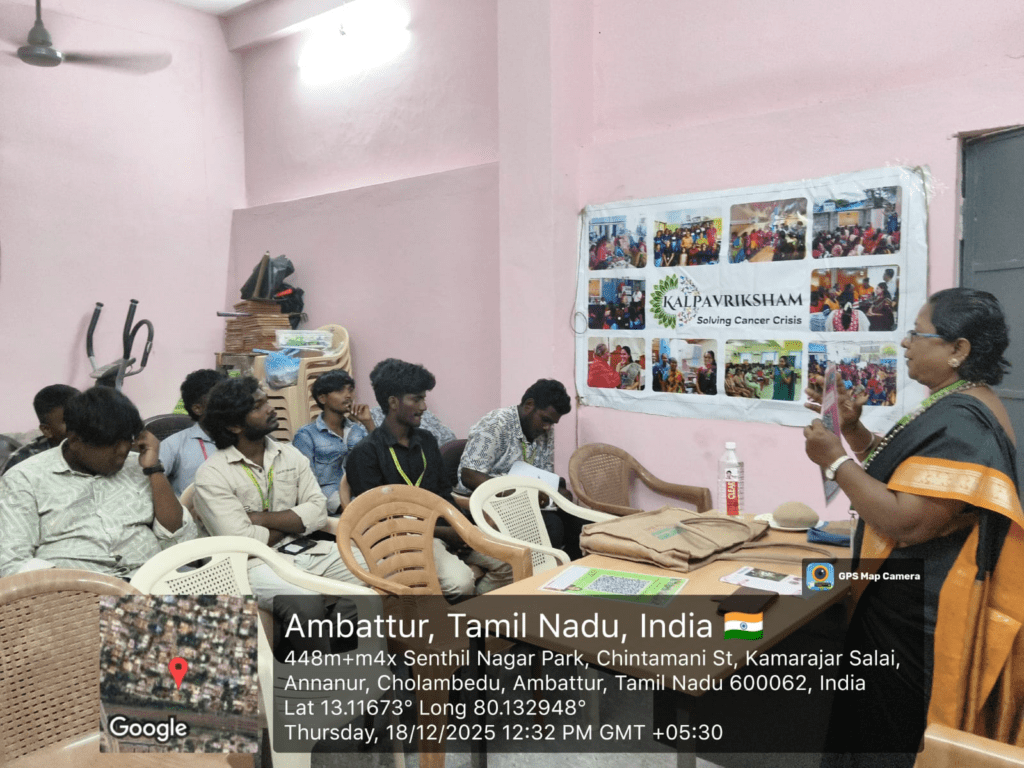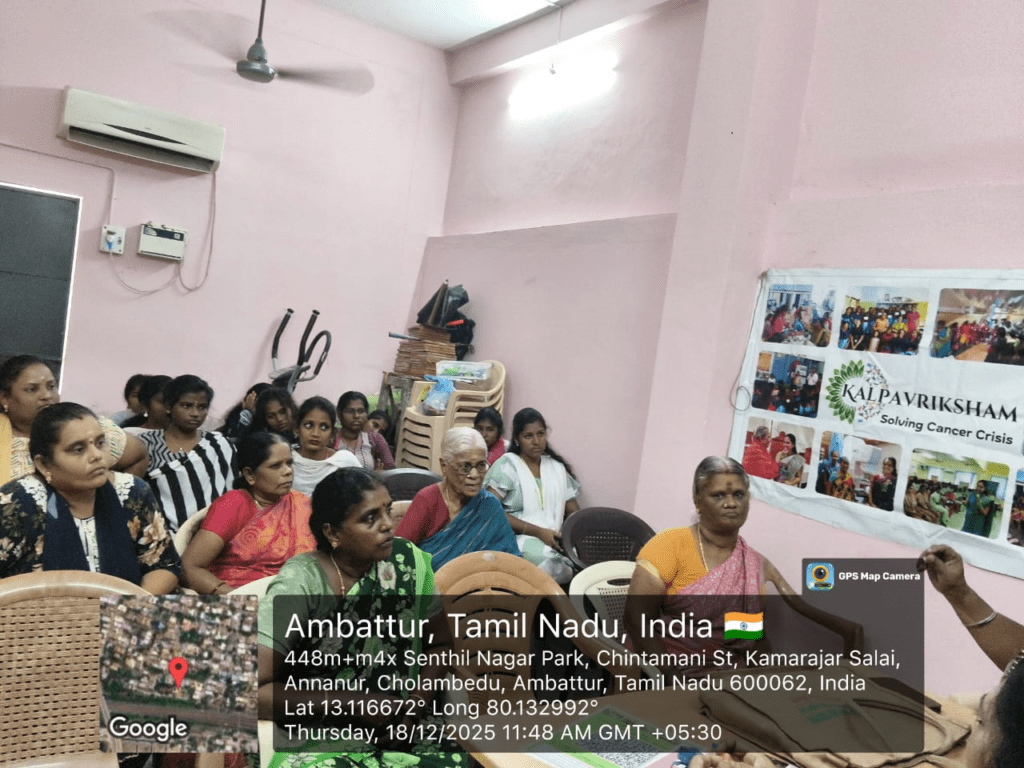 Kalpavriksham Trust, in collaboration with Privaram Cancer Hospital, successfully organized a Cancer Awareness Talk at the Lions Club of Madras–Chetpet, Ambattur. The session was attended by 13 students from Annai Arts & Science College along with their 33 mothers, bringing together a total of 46 participants.The program focused on creating awareness about early cancer detection, prevention strategies, healthy lifestyle choices, and the importance of regular screening tests in reducing cancer risks. The interactive session encouraged participants to be proactive about their health and well-being.Through such meaningful initiatives, Kalpavriksham Trust continues its commitment to building a healthier, informed, and cancer-aware community.