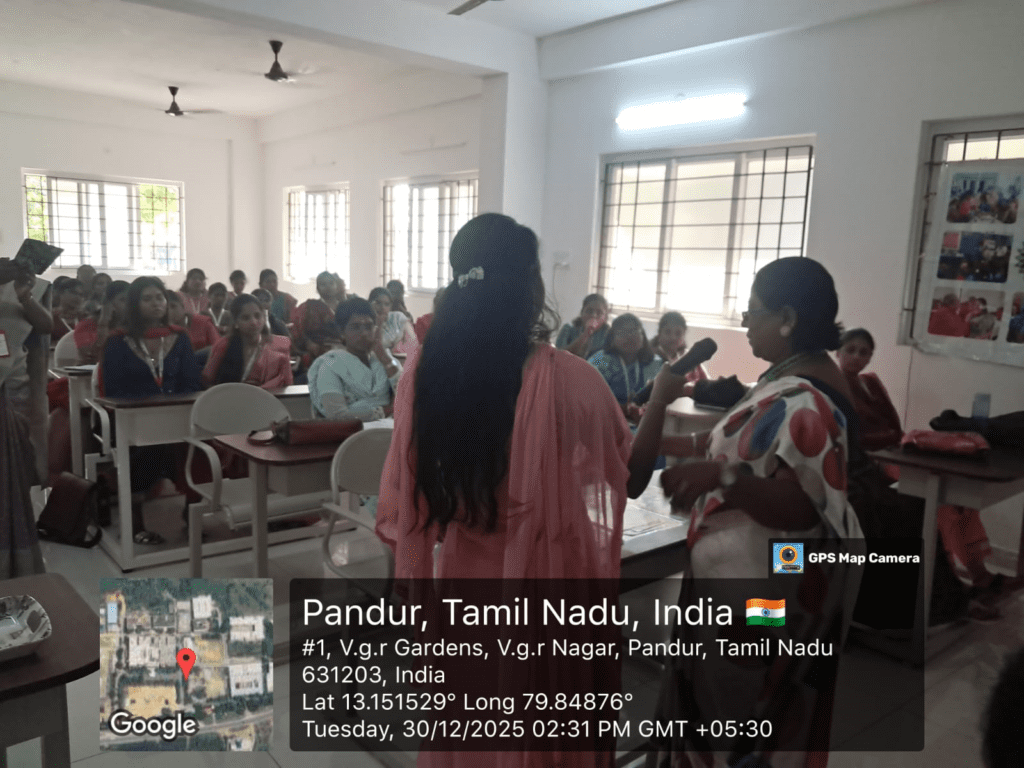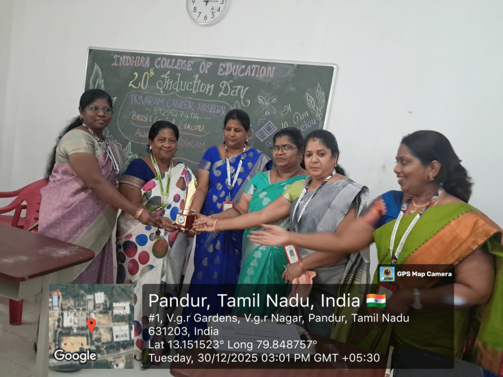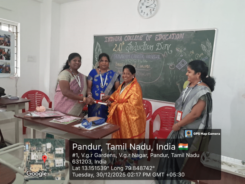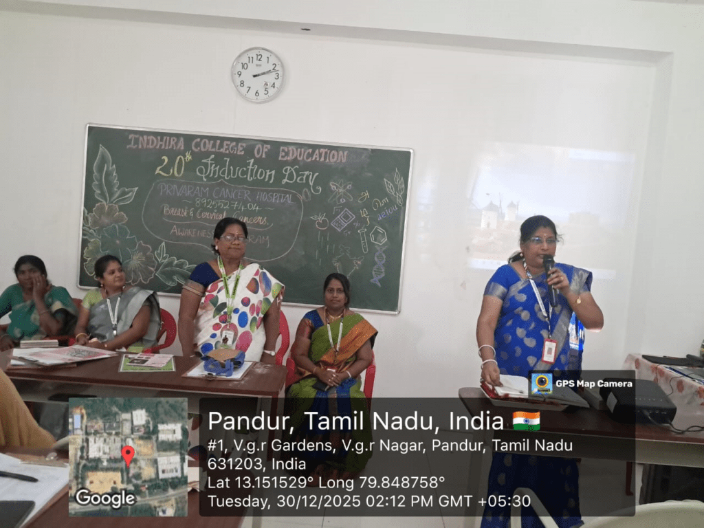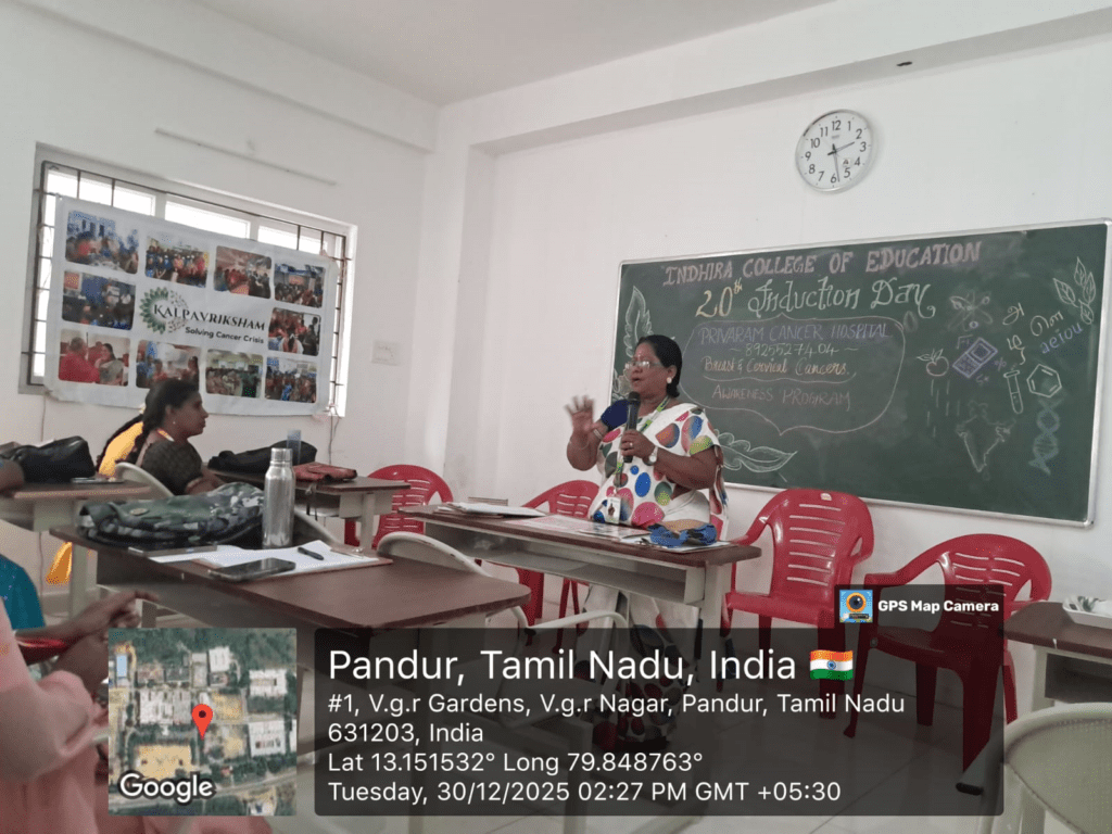 Cancer Awareness Talk at Indhira College of Education, Pandur, Thiruvallur on 30-12-2025