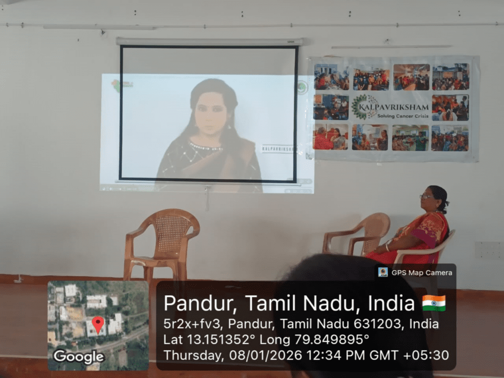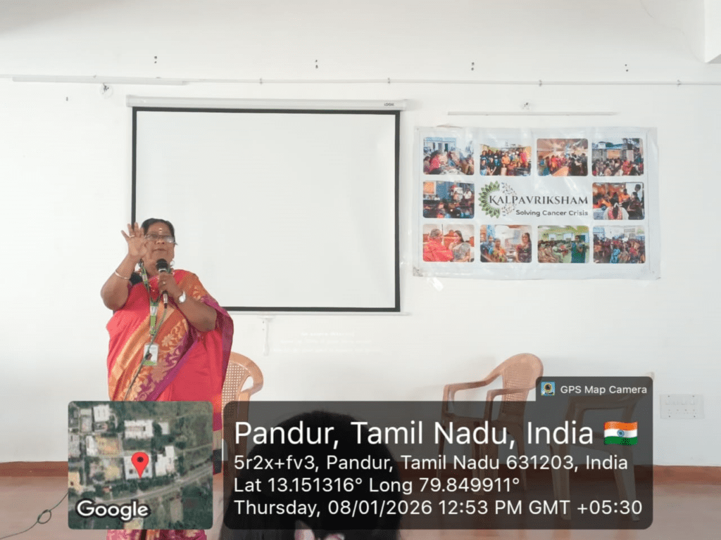 Kalpavriksham Trust, in collaboration with Privaram Cancer Hospital, conducted a Cancer Awareness Talk at Indira Education – College of Allied Health Sciences, Pandur, Thiruvallur, reaching 125 students and staff members. The session focused on early detection and women’s health, highlighting the importance of mammograms, Pap smear tests, and the HPV vaccine.Participants were guided through key topics including cancer risk factors, screening procedures, and the benefits of timely diagnosis. The speaker emphasized the role of preventive screenings in reducing cancer risks and encouraged attendees to adopt proactive health practices.The session aimed to create a lasting impact by fostering awareness, promoting early detection, and empowering the community to make informed decisions for better health and well-being.