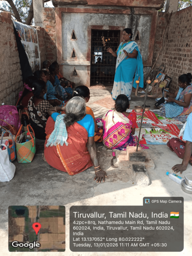 Kalpavriksham Trust, in collaboration with Privaram Cancer Hospital, organized a Cancer Awareness Talk at Nathamedu Village ,Thiruvallur. The session engaged 15 participants and emphasized the importance of mammogram and Pap smear screenings for the early detection and prevention of breast and cervical cancers.The speaker shared clear, practical insights into the procedures, benefits, and necessity of these screenings, motivating participants to adopt proactive health practices. This initiative aimed to empower the community through awareness, encouraging timely screenings and informed health decisions