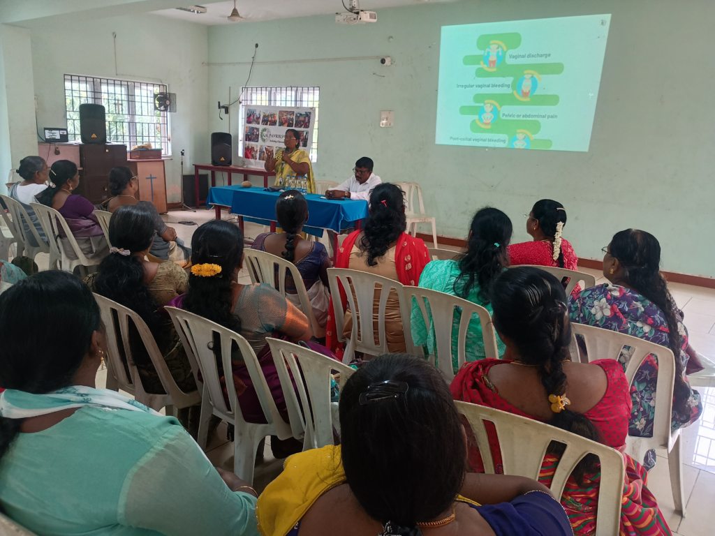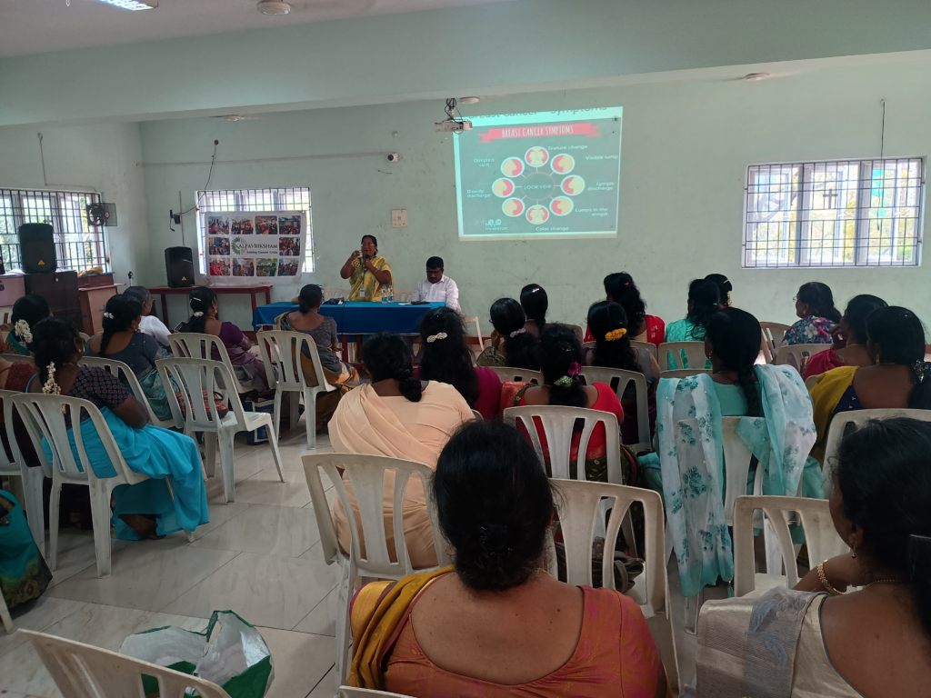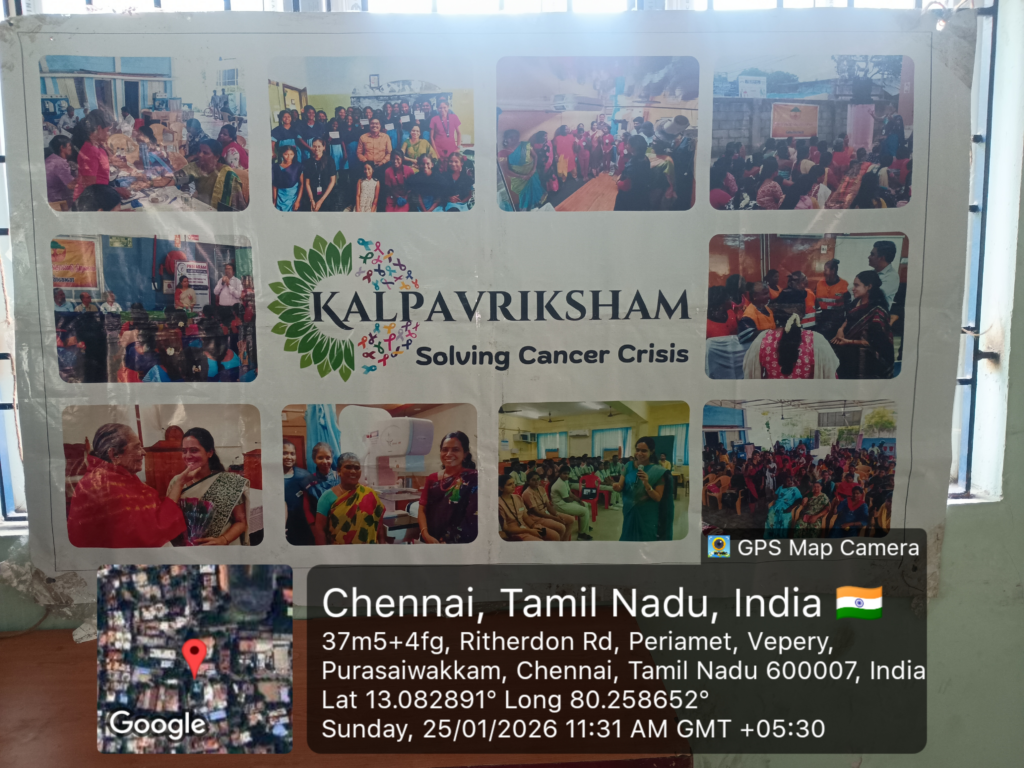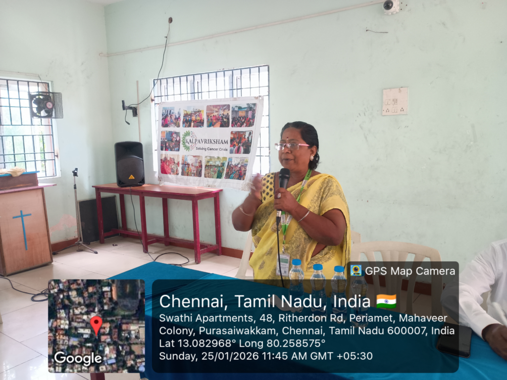 Kalpavriksham Trust, in collaboration with Privaram Cancer Hospital, organized a Cancer Awareness Talk at Methodist Tamil Church, Vepery, with over 40 participants. The session covered Femicare screening camps, early detection, cancer symptoms, mammogram and Pap smear screenings, HPV vaccination, and the role of healthy diet and lifestyle in cancer prevention. The initiative empowered the community with knowledge and encouraged proactive health practices to promote early diagnosis and prevention of breast and cervical cancers.