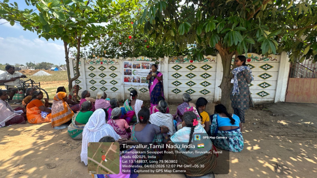 Kalpavriksham Trust, in collaboration with Privaram Cancer Hospital, organized a Cancer Awareness Talk at Sevvapet Road, Kilambakkam, Thiruvallur. The session engaged 30 participants and emphasized the importance of mammogram and Pap smear screenings for the early detection and prevention of breast and cervical cancers.The speaker shared clear, practical insights into the procedures, benefits, and necessity of these screenings, motivating participants to adopt proactive health practices. This initiative aimed to empower the community through awareness, encouraging timely screenings and informed health decisions.