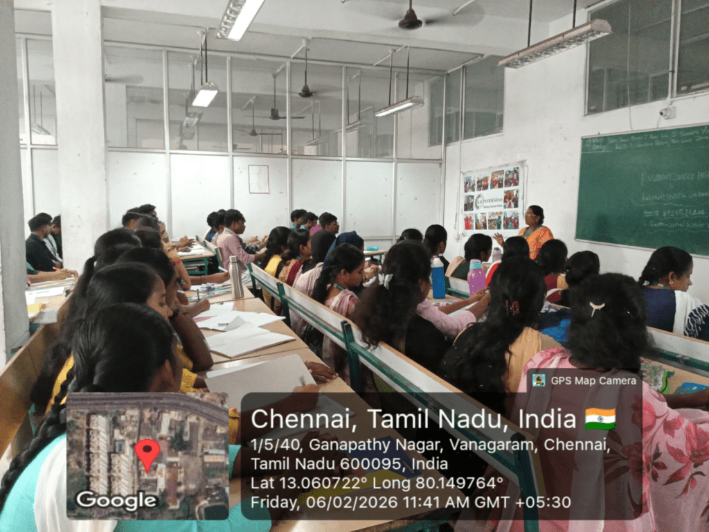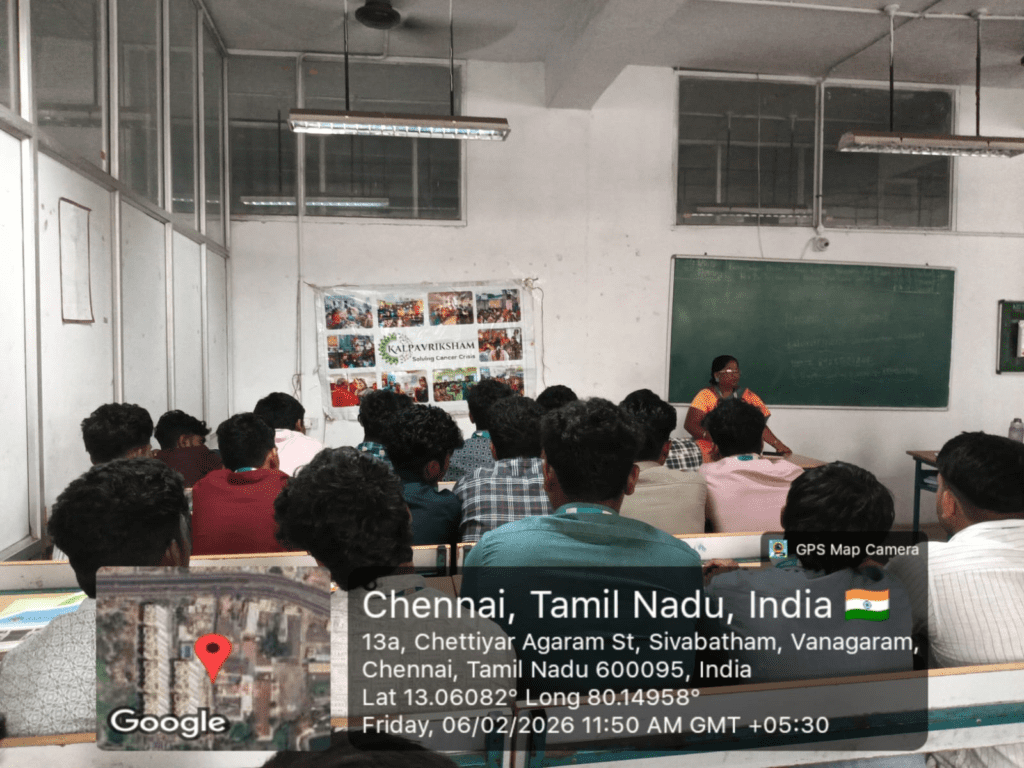Kalpavriksham Trust, in collaboration with Privaram Cancer Hospital, organized a Cancer Awareness Talk at Veecare College of Nursing, Vanagaram, with the active participation of 71 nursing students. The session highlighted the importance of prevention and early detection of cervical and breast cancers, cancer vaccines, and the critical role of peer education, with a strong focus on women’s health.Key discussions emphasized the significance of mammograms, Pap smear tests, and the HPV vaccine in reducing cancer risk. The speaker addressed vital topics such as cancer risk factors, screening procedures, and the benefits of timely detection, motivating students to adopt proactive and preventive health practices.Participants were educated on how regular screenings and preventive care can safeguard long-term well-being and were encouraged to make informed health decisions. This initiative aimed to create a lasting impact by spreading awareness, promoting early diagnosis, and fostering a culture of preventive healthcare within the community.