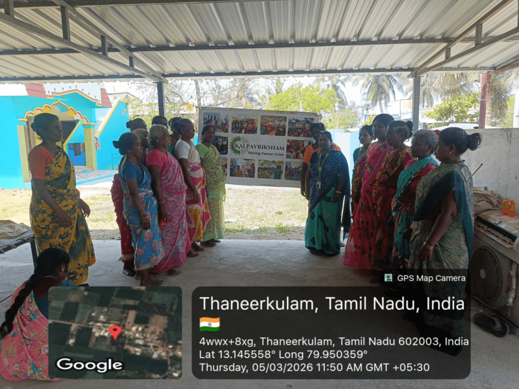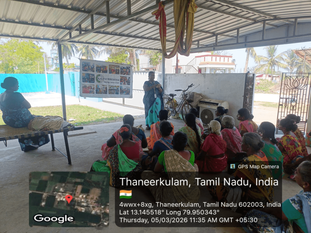 Kalpavriksham Trust, in collaboration with Privaram Cancer Hospital, organized a Cancer Awareness Talk at Near Sivan Koil, Thaneerkulam, Thiruvallur.The session educated 20 participants on the importance of mammogram and Pap smear screenings, emphasizing their critical role in early detection and prevention of breast and cervical cancers. The speaker provided clear insights into the procedures and benefits of these tests, motivating attendees to adopt proactive health practices. This initiative aimed to empower the community through awareness, encouraging timely screenings and informed health decisions for a healthier future.