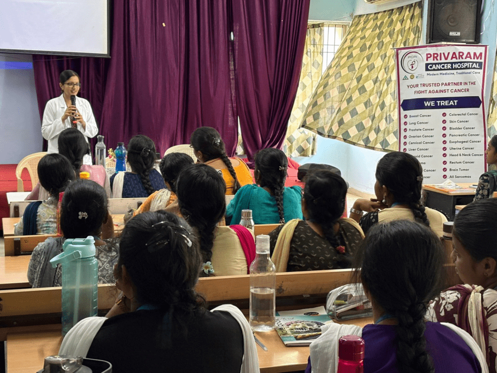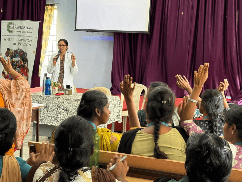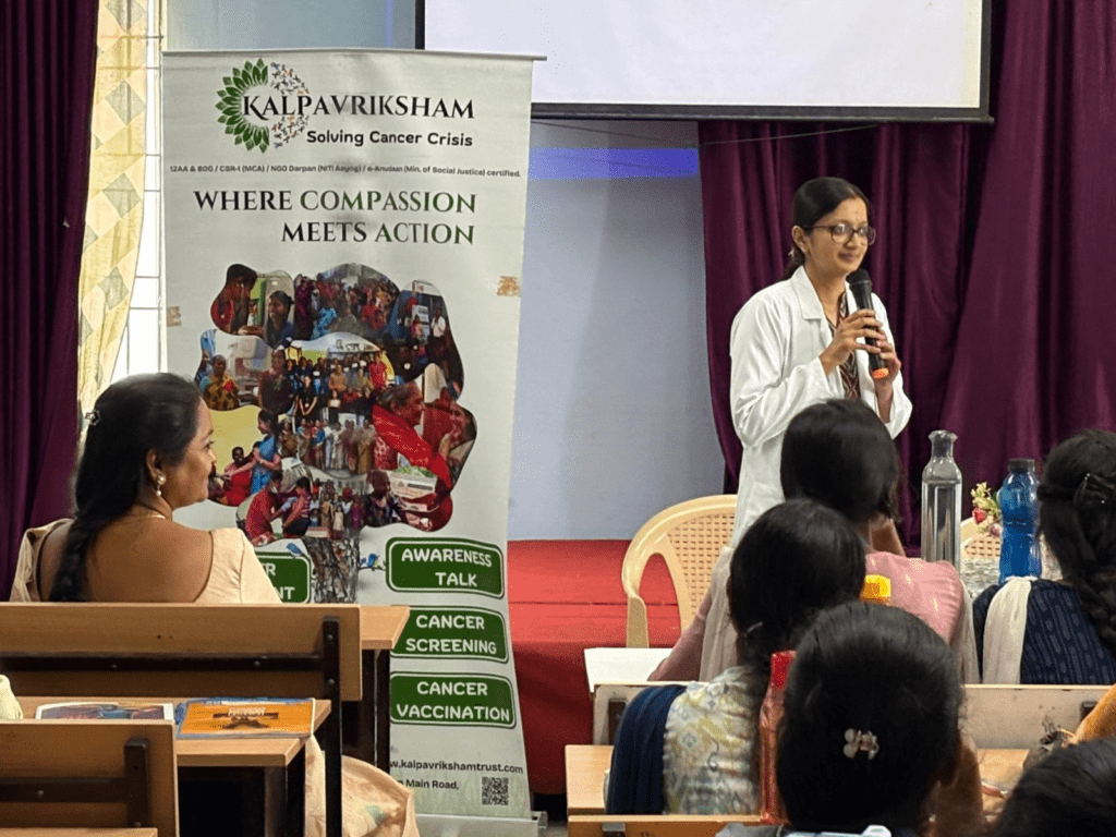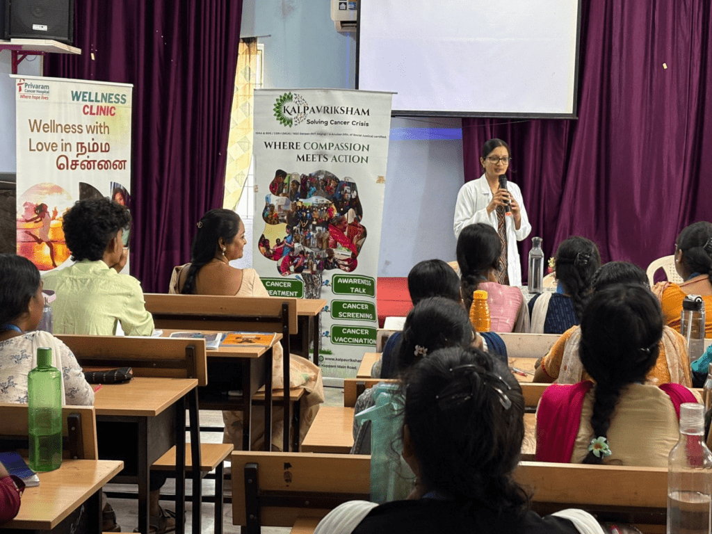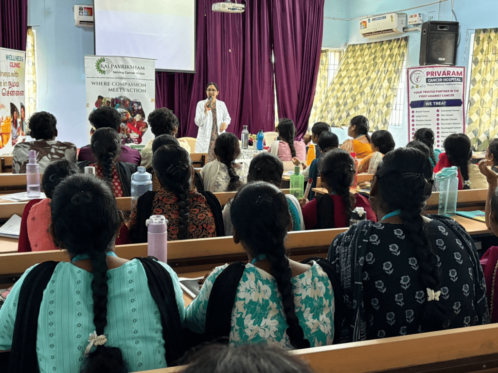 Kalpavriksham Trust, in collaboration with Global Cancer Concern India and Privaram Cancer Hospital, partnered with Billroth College, Chennai, to conduct a cancer awareness session engaging 50 students.The session covered cancer prevention, early detection, myths vs facts, HPV vaccination, and the importance of timely medical care.The keynote by Dr. Aparna emphasized breast cancer awareness, early screening, and menstrual health, encouraging students to make informed health decisions.Together we continue to promote awareness, prevention, and early diagnosis for a healthier future.