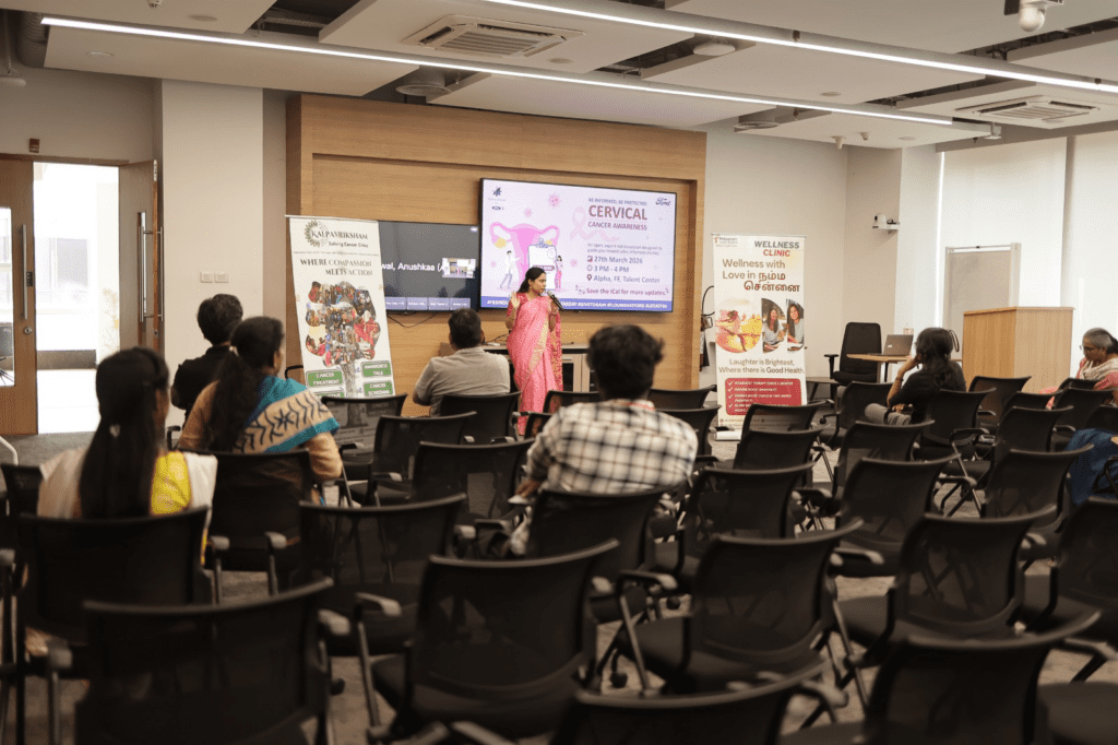 As part of Project Shakthi, Kalpavriksham Trust conducted a Cancer Awareness Talk at Ford Private Limited, Sholinganallur premises on 27th March 2026. The session focused on the importance of early detection, prevention, and promoting a health-conscious workplace culture.The session was delivered by Dr. M. Banu Priya, who shared valuable insights on identifying early symptoms, understanding key risk factors, and adopting preventive healthcare practices.This hybrid session saw active participation from 10 staff members at the Sholinganallur office and 80 staff members who joined online from various branches across Chennai, reflecting a strong commitment toward employee well-being and health awareness across locations.