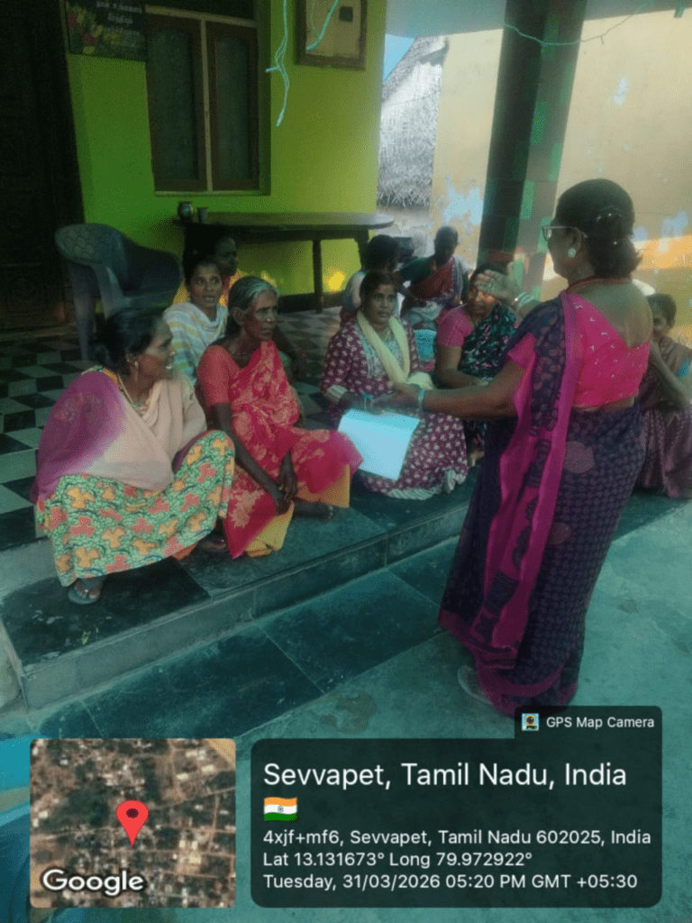 Kalpavriksham Trust, in collaboration with Privaram Cancer Hospital, conducted a Cancer Awareness Talk at Madha Kovil, Kamarajar Nagar, Sevvapet, Thiruvallur, engaging around 16 participants.The session highlighted the importance of early detection through mammogram and Pap smear screenings, explaining the procedures, benefits, and the need for timely check-ups. It also encouraged participants to adopt proactive health practices and make informed decisions.This initiative reflects the commitment to promoting preventive healthcare and empowering communities towards better health and well-being.