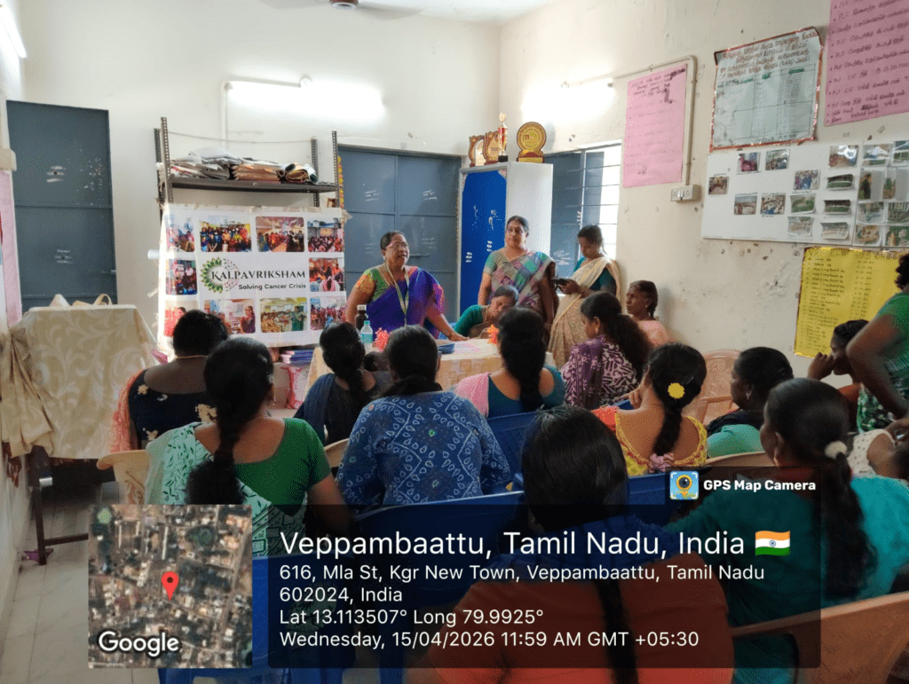 Kalpavriksham Trust, in collaboration with Privaram Cancer Hospital, organized a Cancer Awareness Talk at VPRC Building-Perumalpattu, Veppampattu, Thiruvallur. The session educated 40 women participants on the importance of mammogram and Pap smear screenings, emphasizing their critical role in the early detection and prevention of breast and cervical cancers. The speaker provided clear insights into the procedures and benefits of these tests, motivating attendees to adopt proactive health practices. This initiative aimed to empower the community through awareness, encouraging timely screenings and informed health decisions for a healthier future.