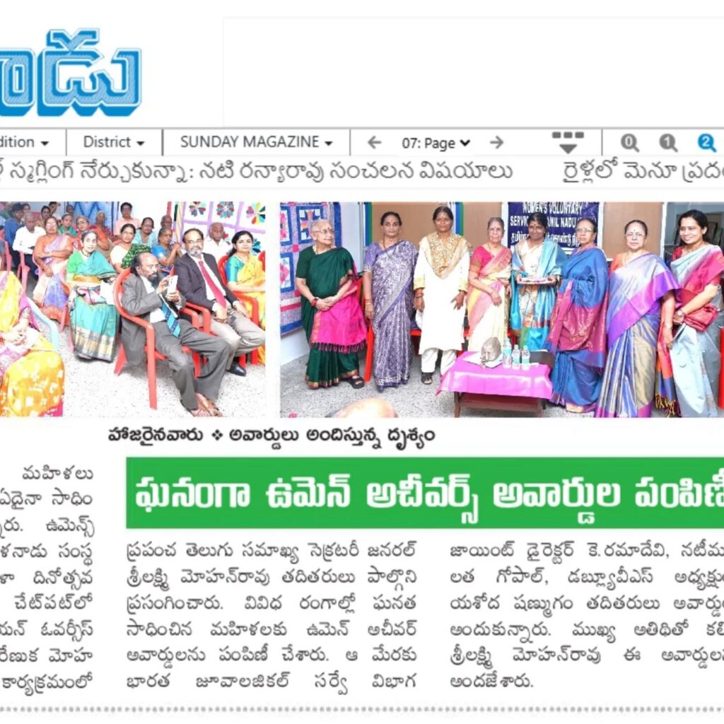 Women Voluntary Service Marks International Women’s Day with Art, Empowerment, and the Prestigious Avvaiyar Award –